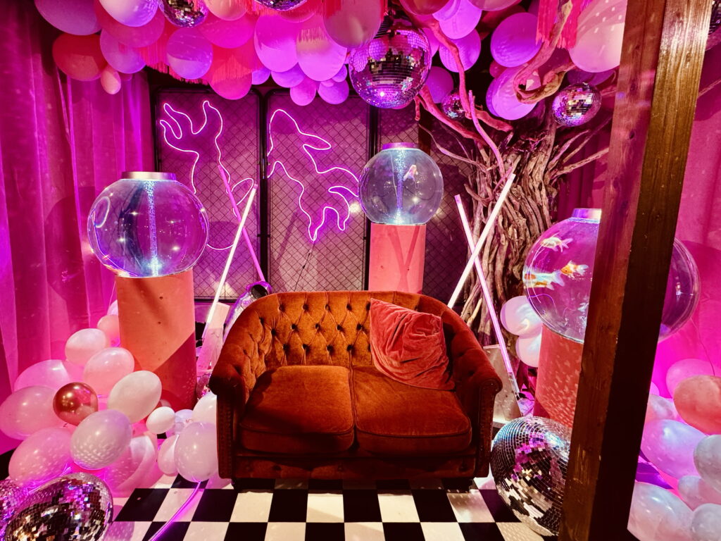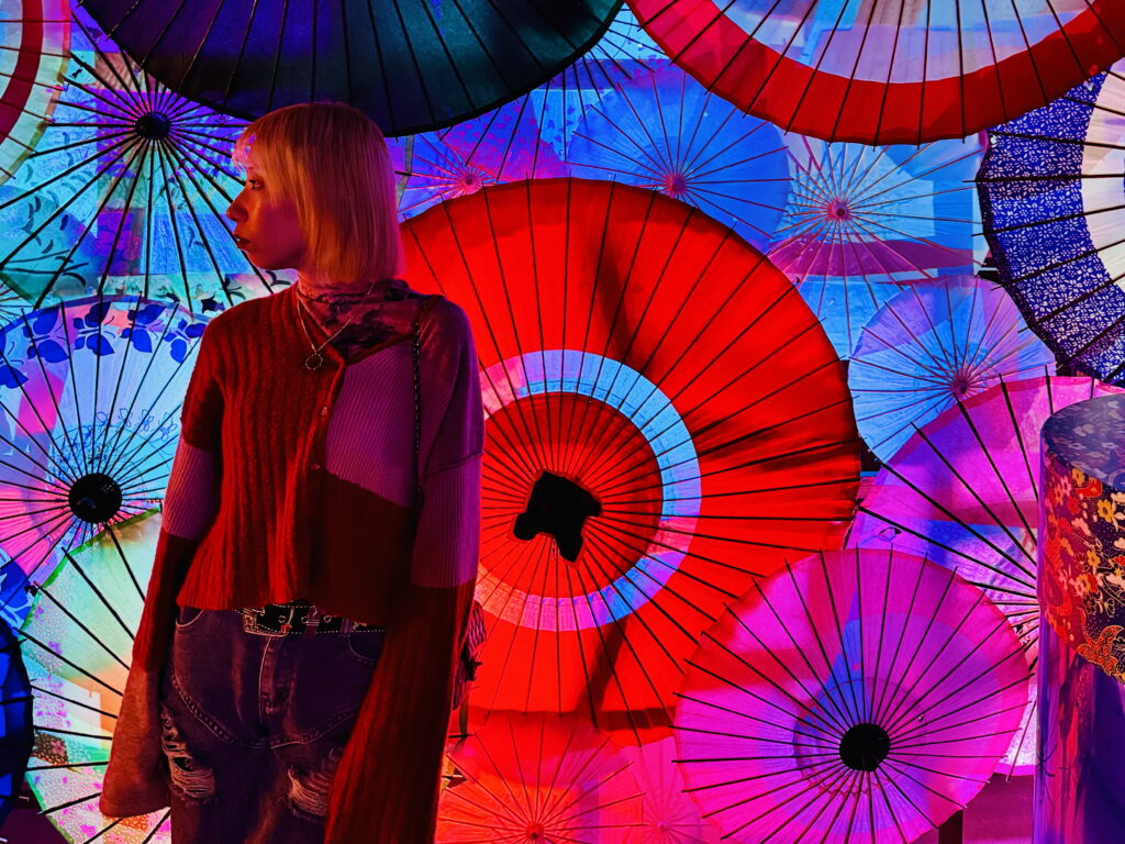 「ネオン金魚」、「ミラールーム」など、テーマごとのエリアでは、まるで自分が作品の一部になったような写真が撮れます!