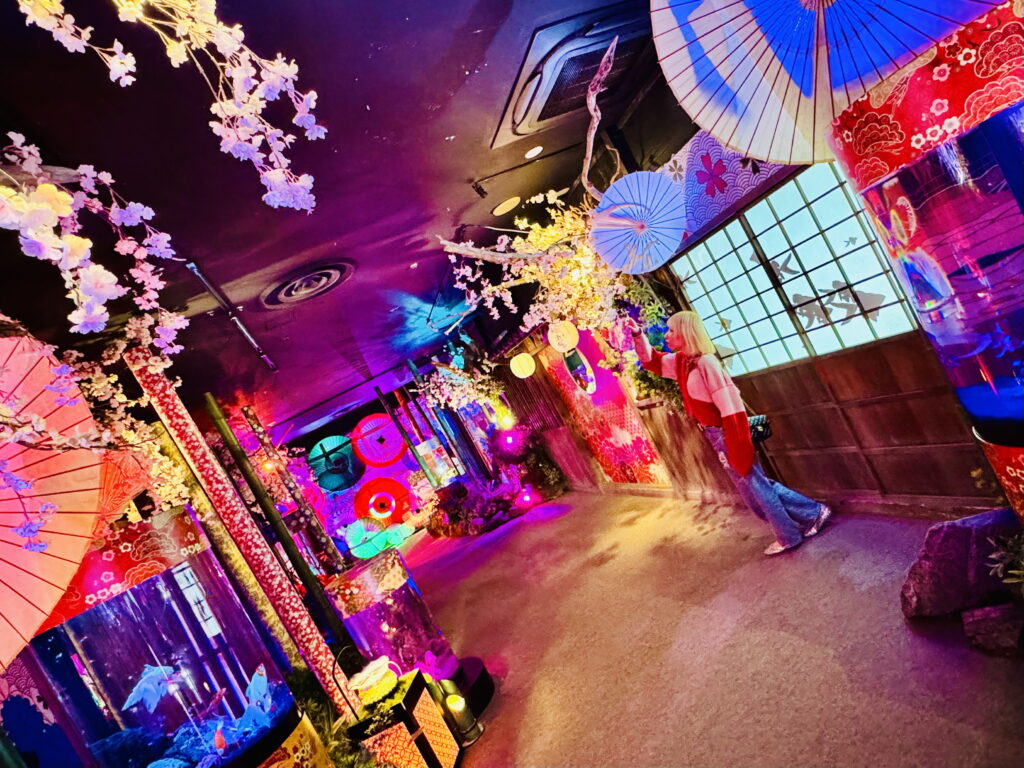 お子さんでも安心して楽しめる金魚すくいや、プロジェクションマッピングと連動したアート体験が充実しています。