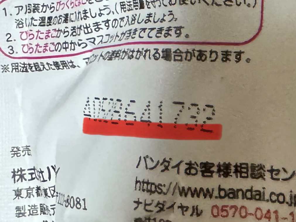 びっくらたまごには、パッケージ裏の下に、シリアルコードが記載されています。
