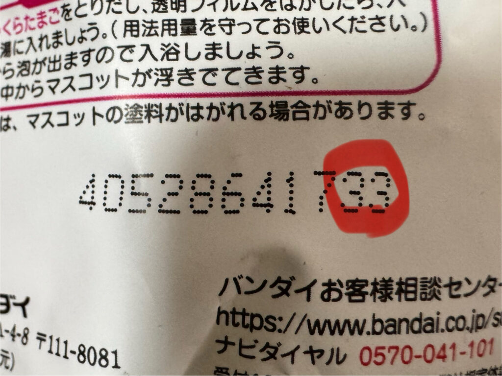 ポイントは、びっくらたまごパッケージ記載のキャラクターの順番と、シリアルコード下2桁の数字が一致していること。