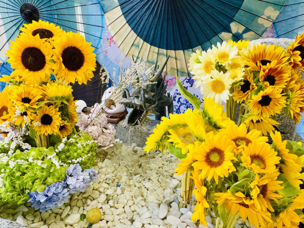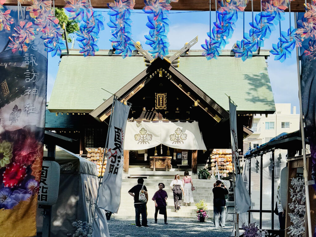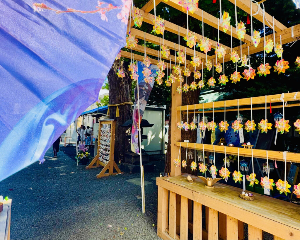 札幌諏訪神社の境内 : 風車や風鈴、季節折々の花々