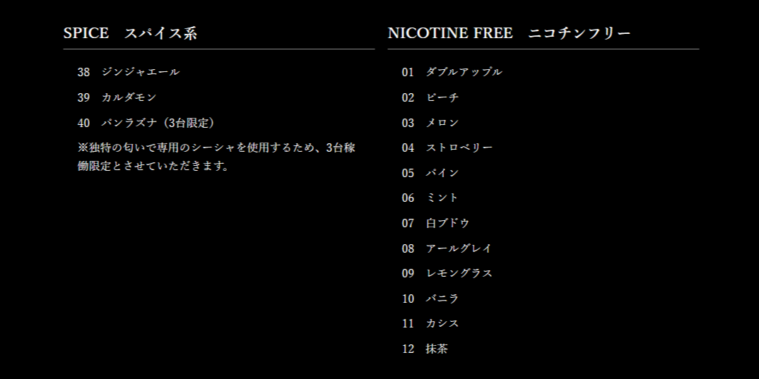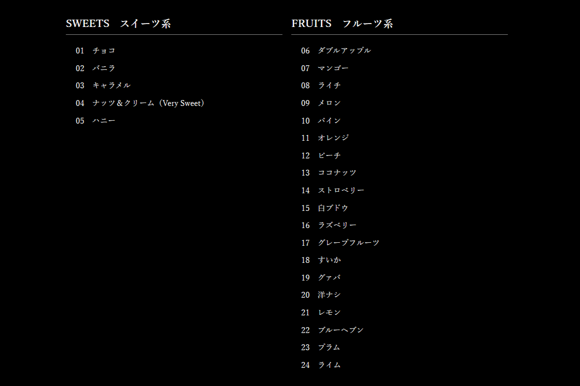 フレーバーの数は約40種。組み合わせも可能なので、必ず気に入るフレーバーが見つかるはず。