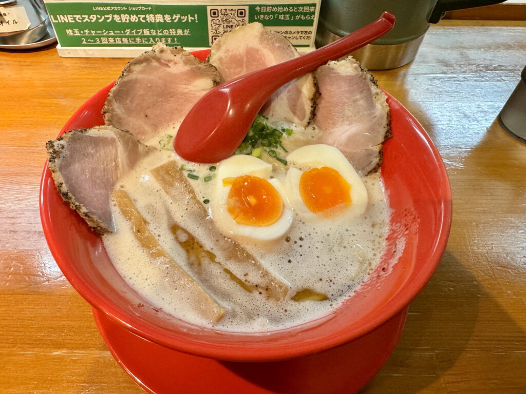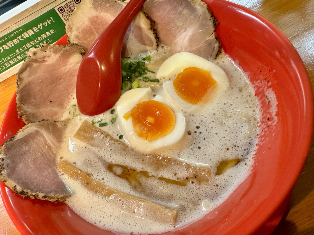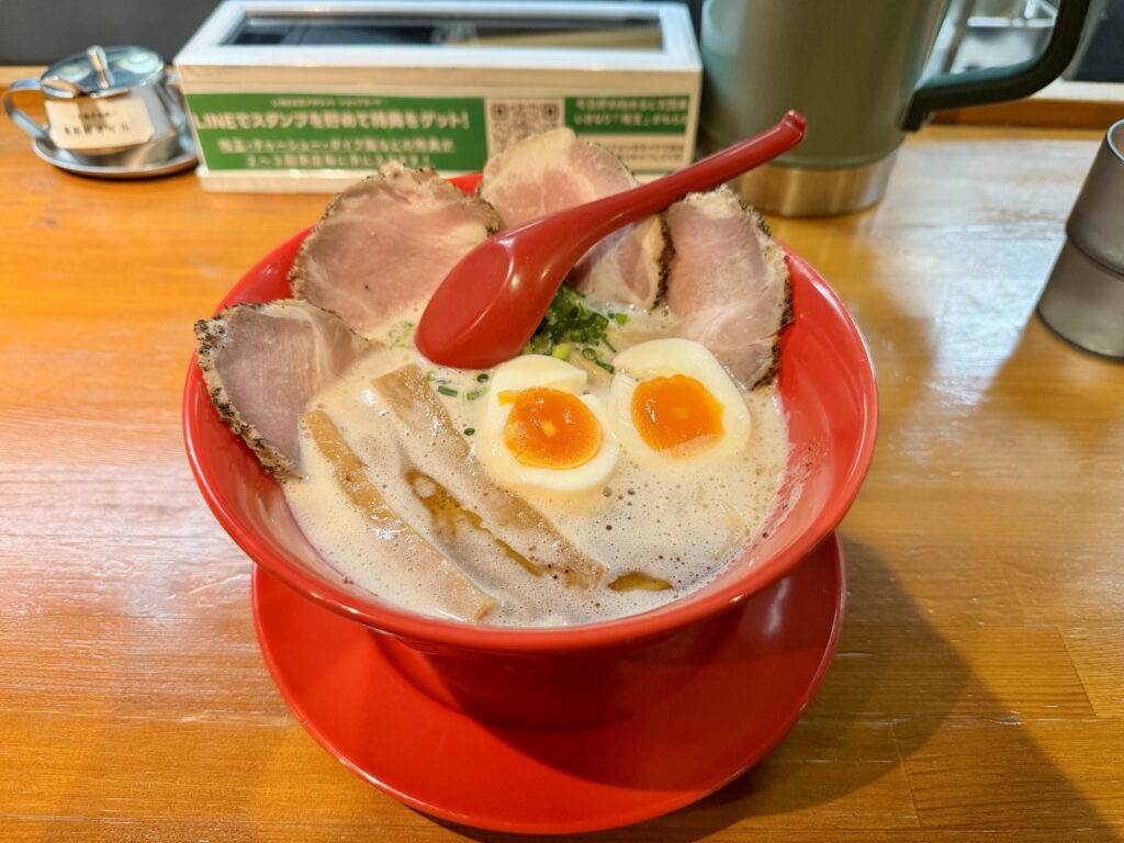 今回いただいたのは看板メニューの豚骨ラーメン。