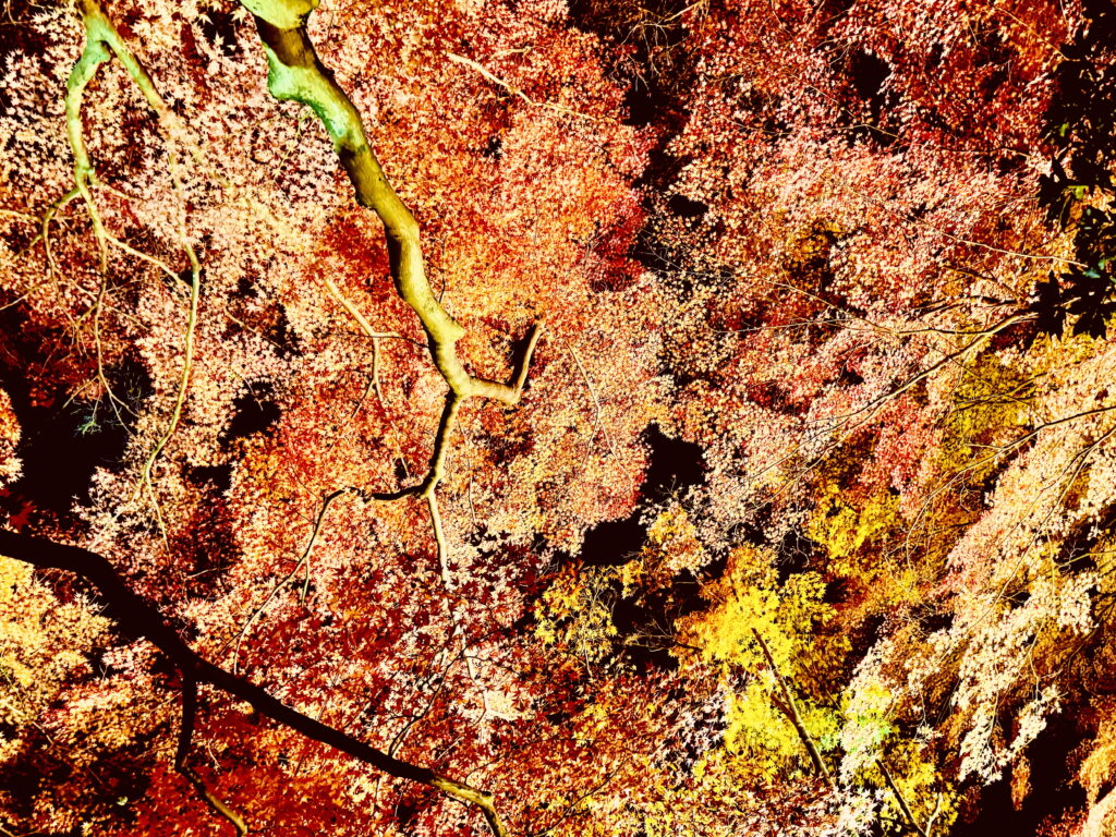 私が訪れた17:40頃は、ライトアップが紅葉の色味を一層引き立てていて、まるで絵画のような空間。