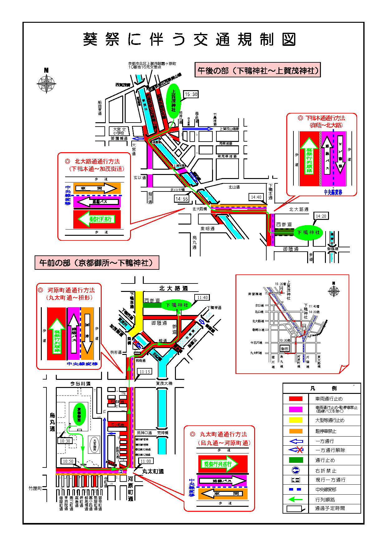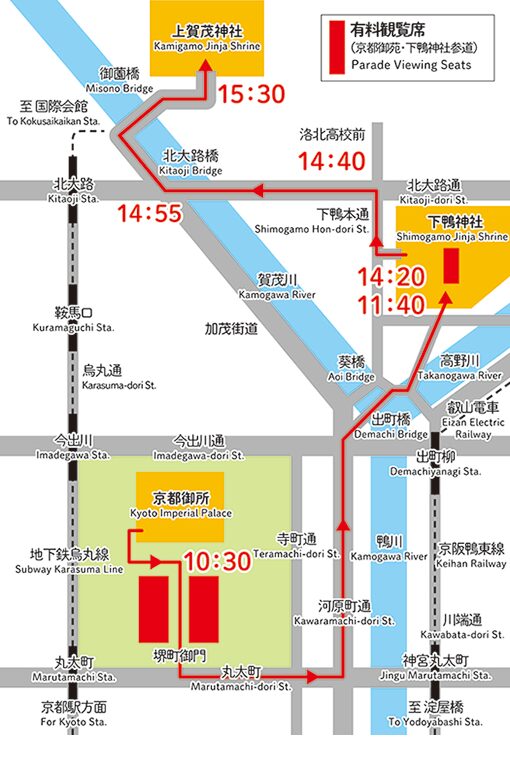 京都御所、下鴨神社、上賀茂神社など、行列の主要な通過地点に設置されています。