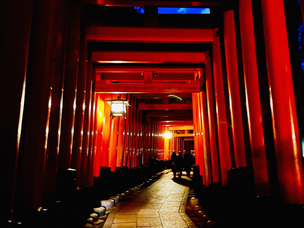 - 伏見稲荷の参拝は「お山めぐり」とも言われる通り、階段と坂道の連続です。深夜は足元が暗い(石段の角が見えにくい)、石畳が滑りやすいなど、危険があるため、ヒールや慣れない靴は絶対に避けましょう。スニーカーこそが、伏見稲荷における正装です。
